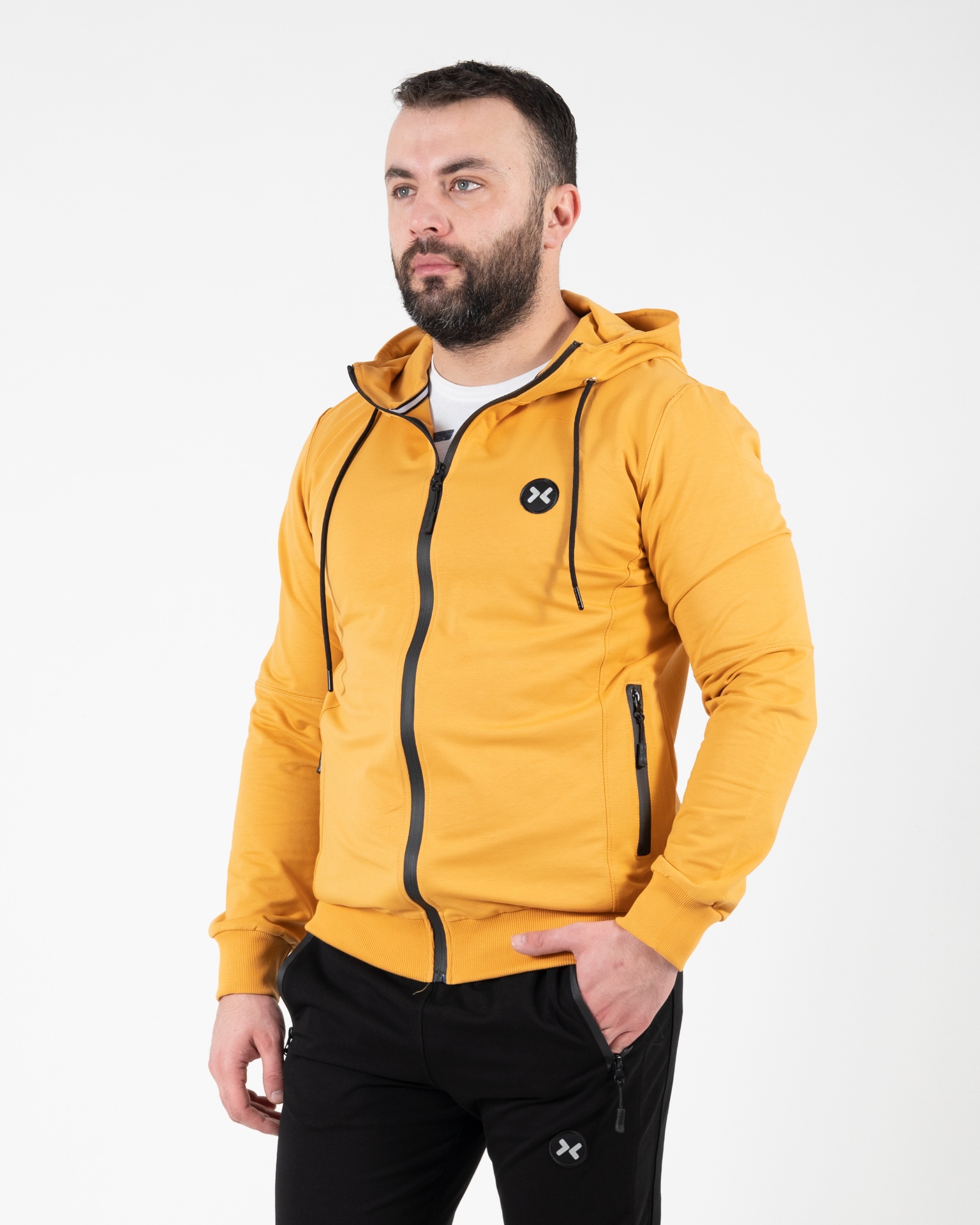 Dizajn sa kapuljačom, rajsferšlus zatvaranjem i funkcionalnim džepovima čini je praktičnom za svakodnevnu upotrebu. Moderni detalji u vidu diskretnih linija na rukavima i minimalističkog izgleda daju jaknici atraktivan i savremen izgled, idealan za sportske i casual kombinacije.