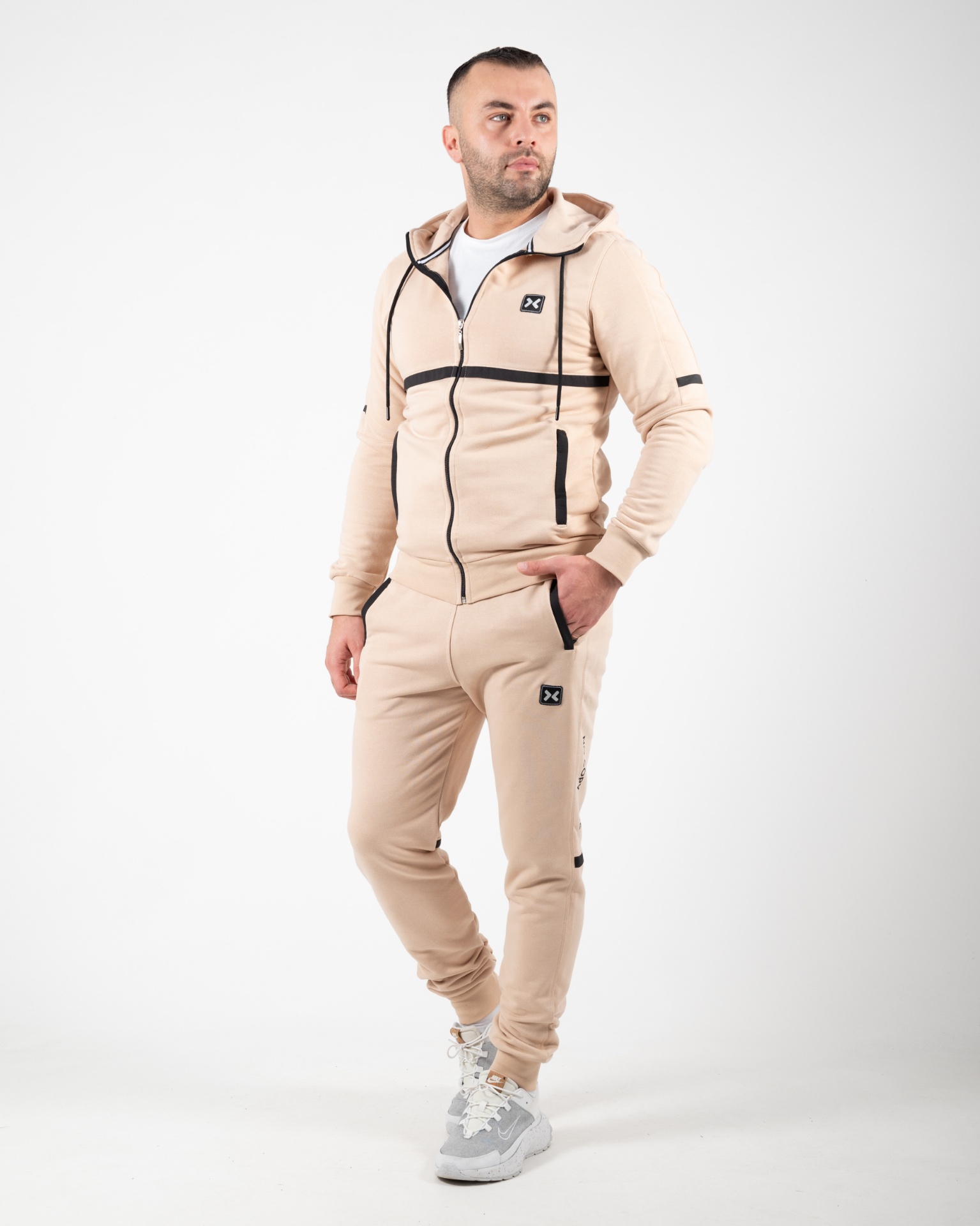 Dizajn: Moderan sportski kroj sa detaljima u kontrastu, prepoznatljiv No Copy logo i savršeno uklopljeni elementi gornjeg i donjeg dela. Jaknica poseduje kapu.