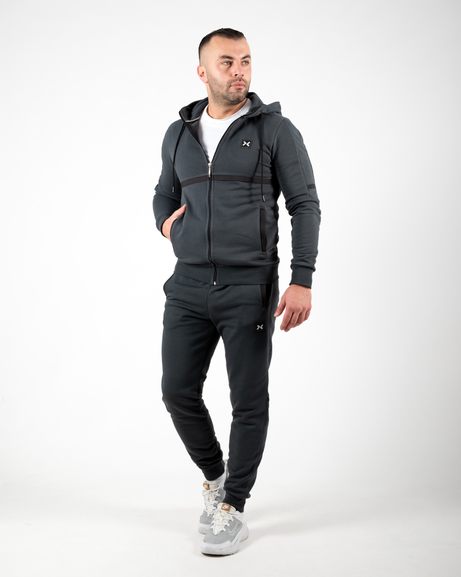 Dizajn: Moderan sportski kroj sa detaljima u kontrastu, prepoznatljiv No Copy logo i savršeno uklopljeni elementi gornjeg i donjeg dela. Jaknica poseduje kapu.