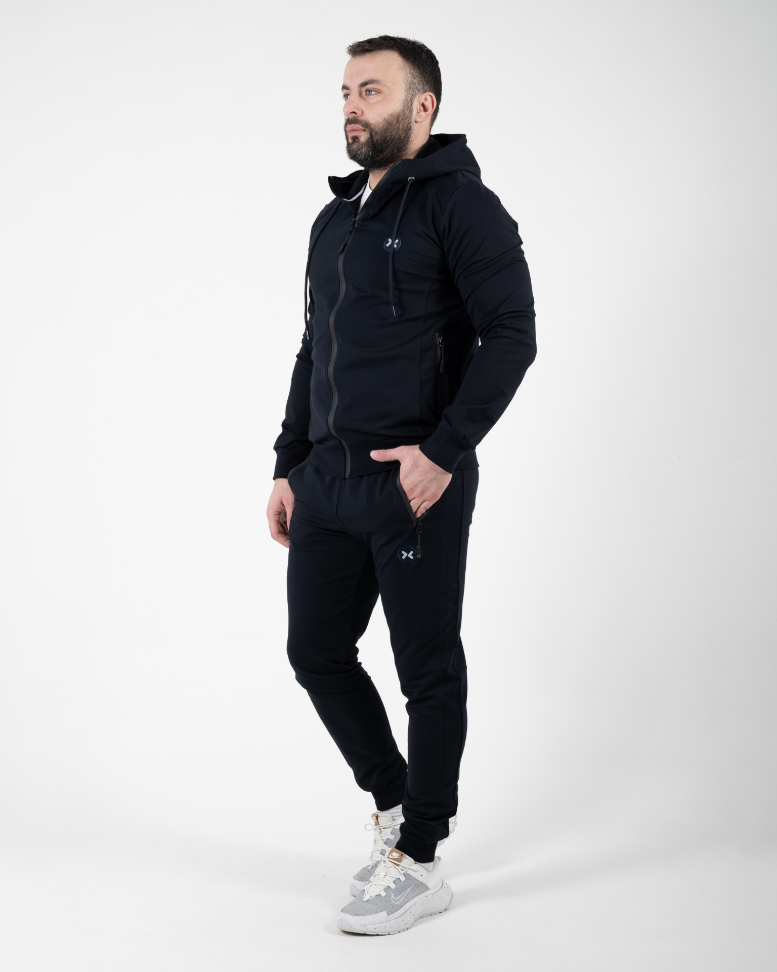 Slim fit kroj prati liniju tela i naglašava siluetu, dok prijatan i rastegljiv materijal pruža udobnost tokom celog dana. Gornji deo sa kapuljačom i rajsferšlus zatvaranjem ima praktične džepove sa rajsferšlusom i diskretan logo na grudima. Donji deo poseduje elastičan pojas sa učkurom, sužene nogavice sa lastikom na dnu i funkcionalne džepove, uz minimalistički logo za moderan sportski izgled.